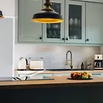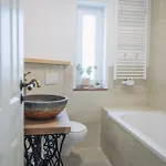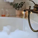 A fürdőszoba fürdőkáddal és zuhanyzóval van ellátva.